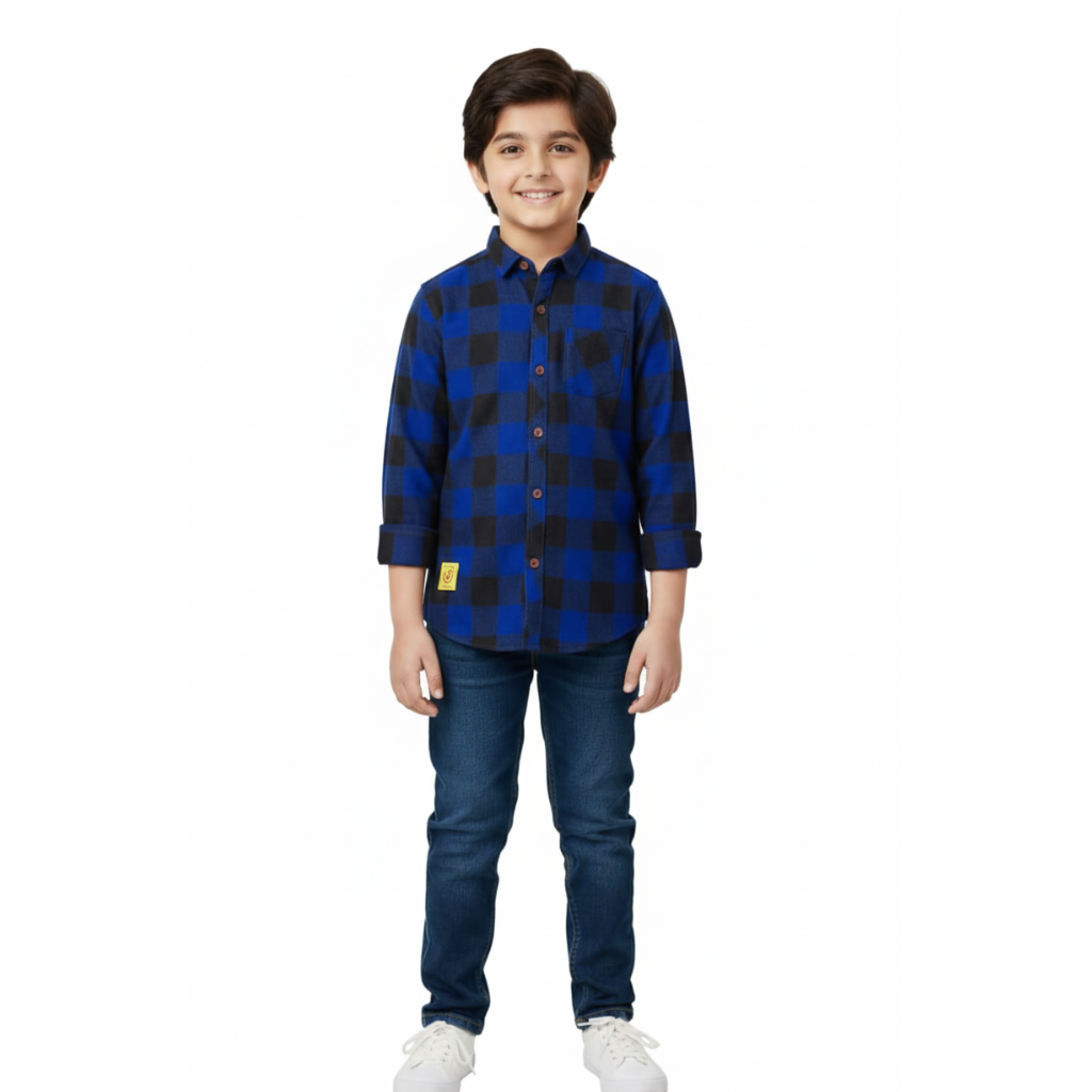 Upgrade your child’s casual wardrobe with this stylish blue and black checkered shirt, designed for comfort and everyday wear. Crafted from soft, breathable cotton fabric, this shirt ensures all-day ease while keeping a smart, modern look.