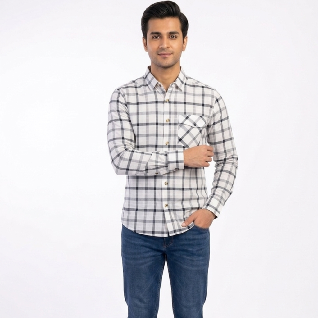 Elevate your daily style with this sharp monochromatic grid check shirt. Featuring a clean white base with bold black windowpane checks, this shirt offers a high-contrast, modern aesthetic that is both timeless and trendy.