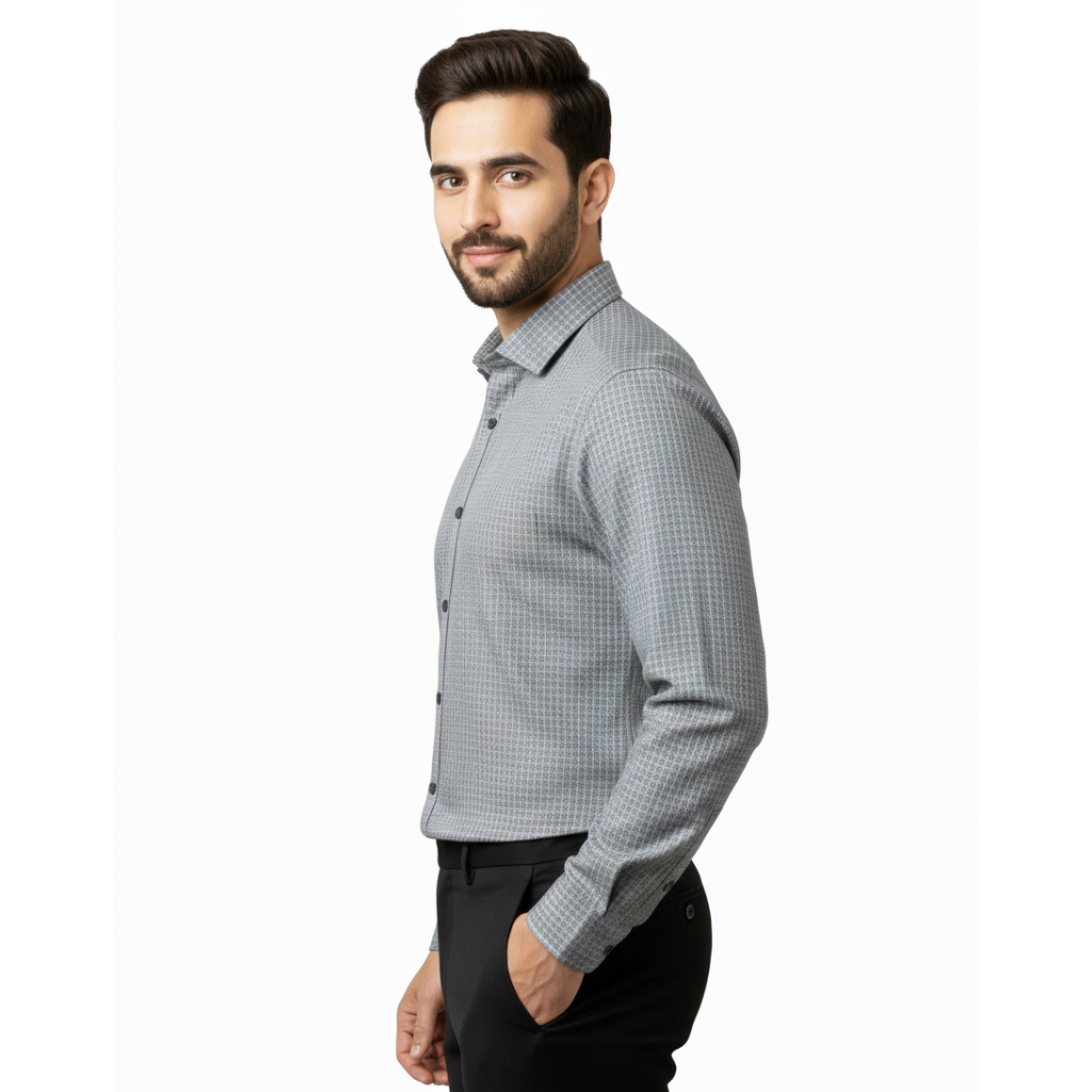 Add a touch of refined elegance to your professional wardrobe with our Grey Micro-Checkered Formal Shirt. This shirt is designed for the modern professional who appreciates subtle patterns and a sophisticated silhouette. Featuring a delicate micro-check design, it offers a refreshing alternative to solid colors while remaining perfectly suited for the boardroom or any formal occasion.